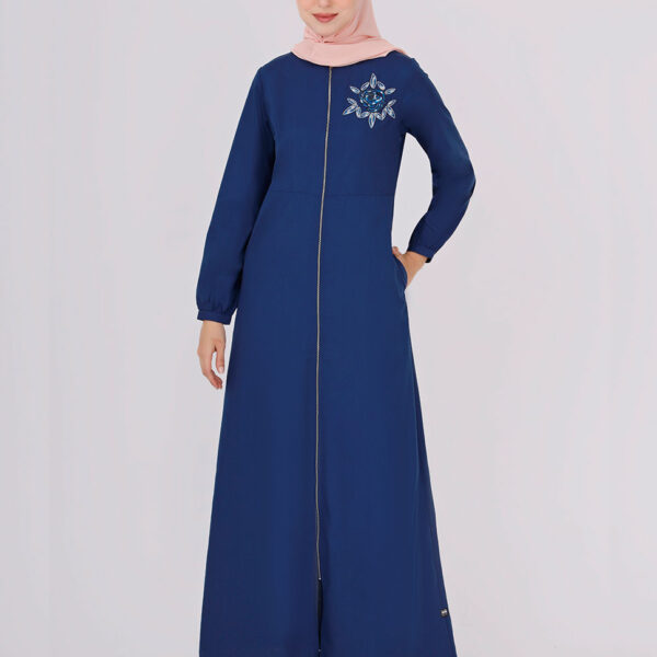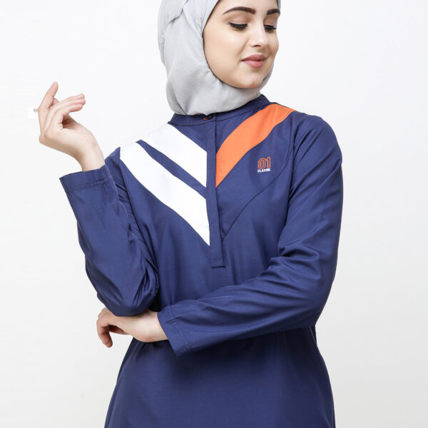 Navy Blue Jilbab With Chevron Contrast Stripes
