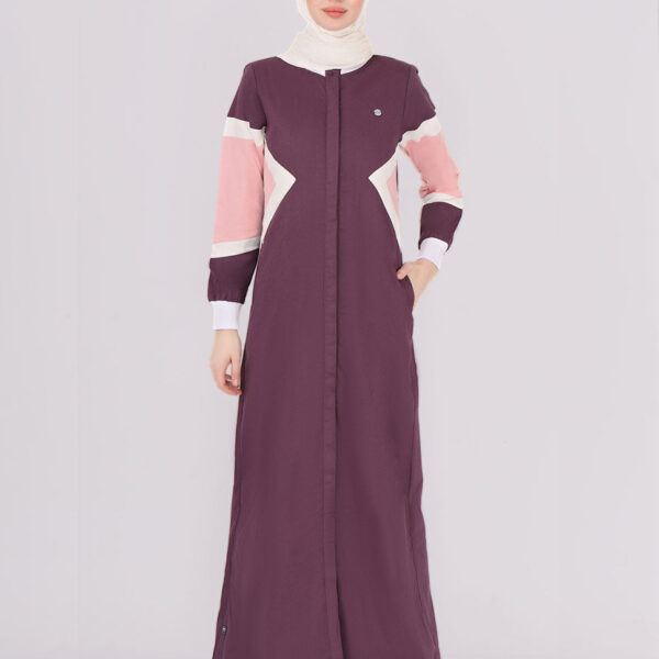 Purple Winter Contrast Full Front Open Jilbab