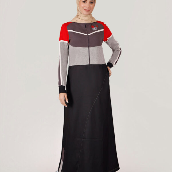 Red Highlights Black Color Block Jilbab