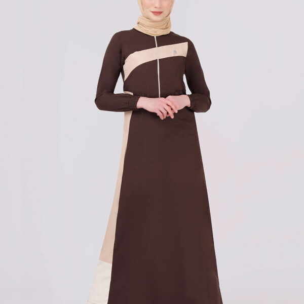 Round Neck Color Contrast Brown Jilbab
