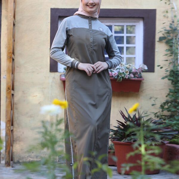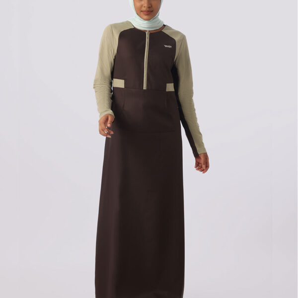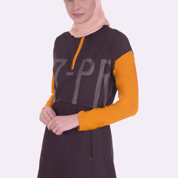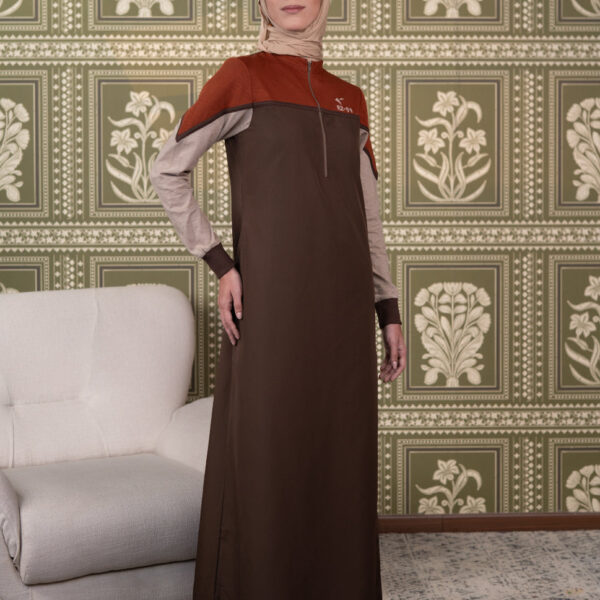 Coffee Brown & Mustard Jilbab with Waist Adjustable Toggles