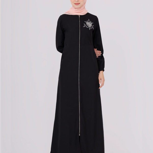 Full Front Open Black Embroidered Jilbab
